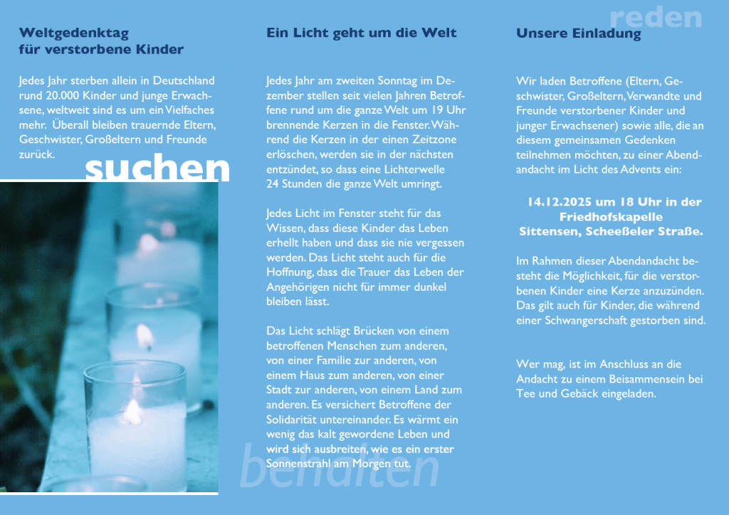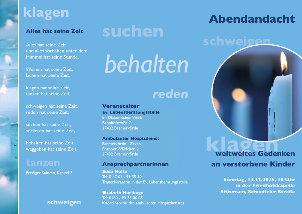 Am 11. Oktober findet der Welthospiztag 2025 statt. Unter dem Motto „Hospiz: Heimat für alle“ begleitet und unterstützt der Ambulante Hospizdienst Bremervörde-Zeven in Zusammenarbeit mit dem Palliativnetz im Altkreis Bremervörde und dem Hospiz zwischen Elbe und Weser schwerstkranke, sterbende Menschen sowie ihre Angehörigen.